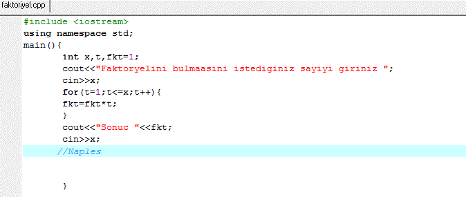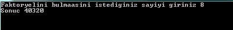 Programda kullanıcının girdiği sayının faktöriyelini bulunacak.